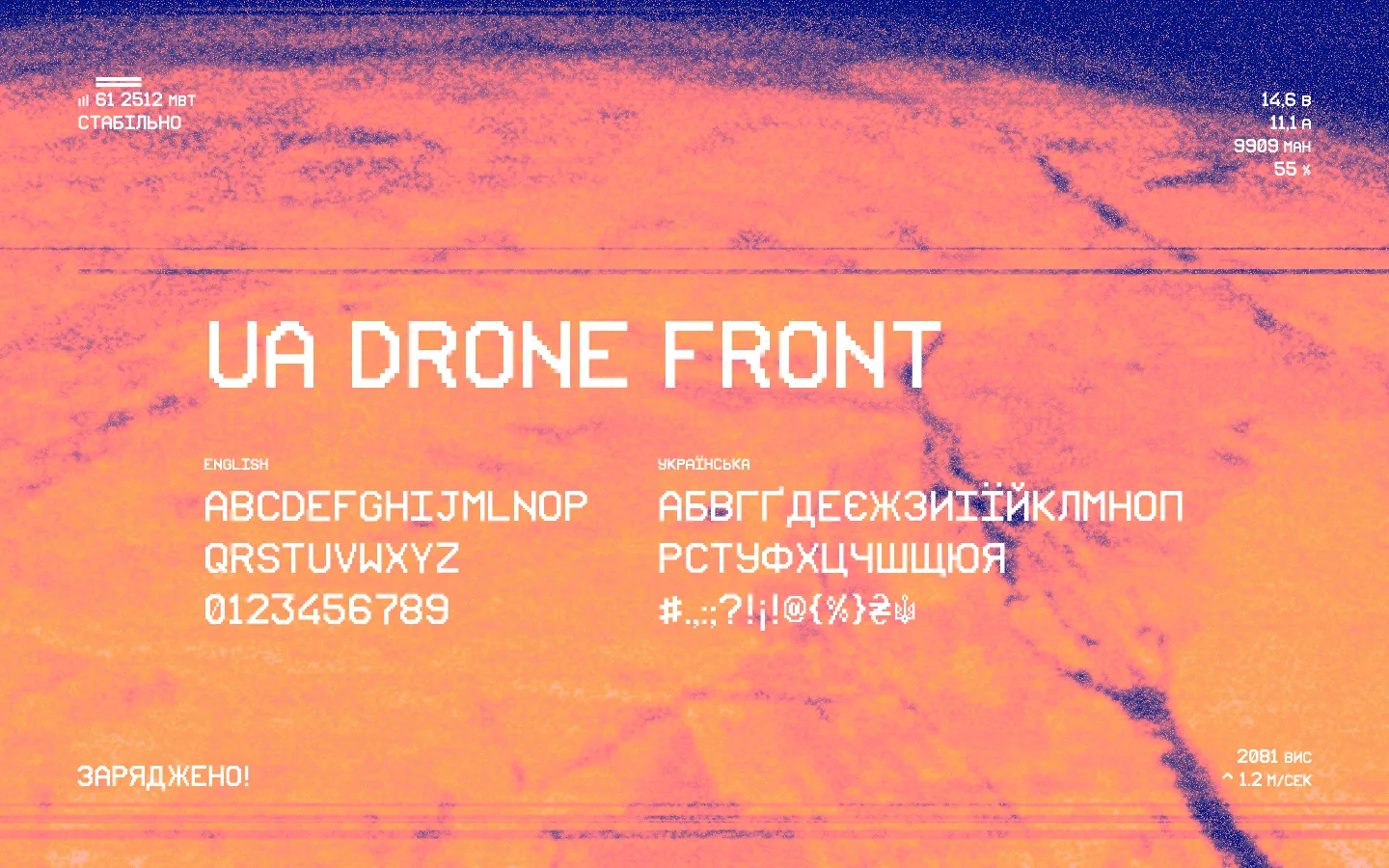 Ідея проста, реалізувати легко! Але коли дійшло до того, щоб відтворити вигляд HUD борта — довелось запаритись. Я хотів, щоб текст на умовному екрані було написано українською мовою, але водночас щоб було враження, що це справжній текст з ударного дрона. Довелось зробити власний шрифт.